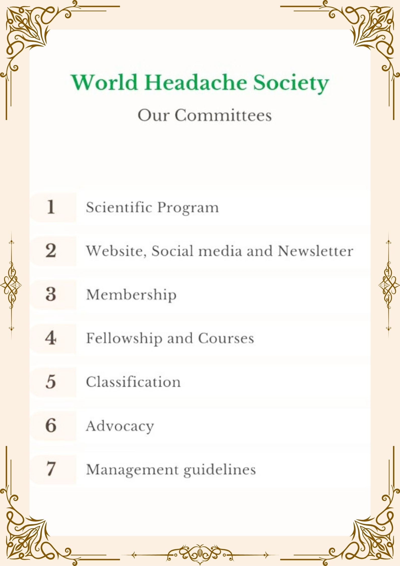 The World Headache Society (WHS) is honored to collaborate with a diverse team of globally renowned experts in headache medicine, neurology, pain management, and clinical research as Board Members. Our experts bring unparalleled expertise, guiding WHS’s mission to advance headache care, educate healthcare providers, and shape the future of headache medicine.